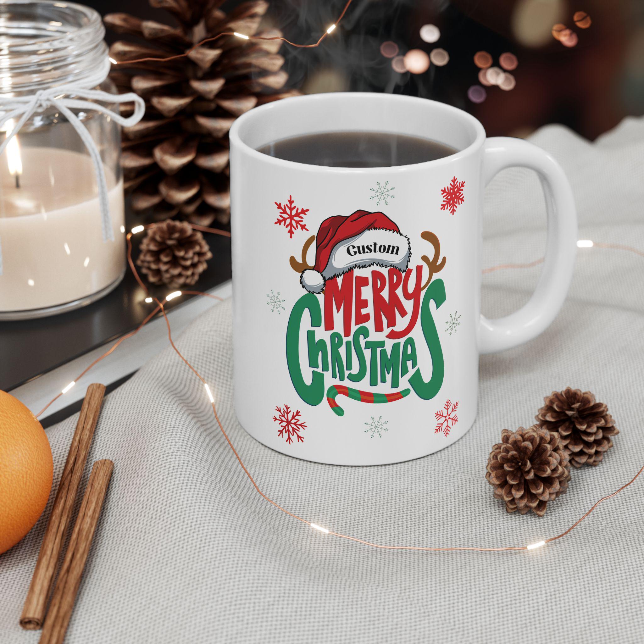 Personalized Merry Christmas Santa Hat Coffee Mug (11oz, 15oz)
