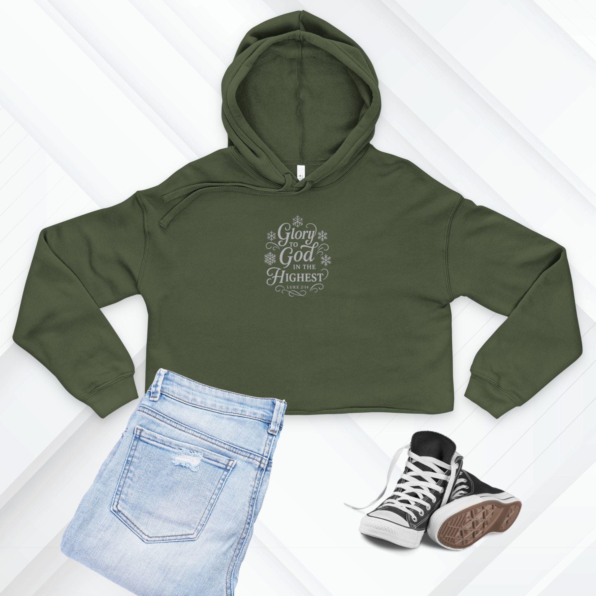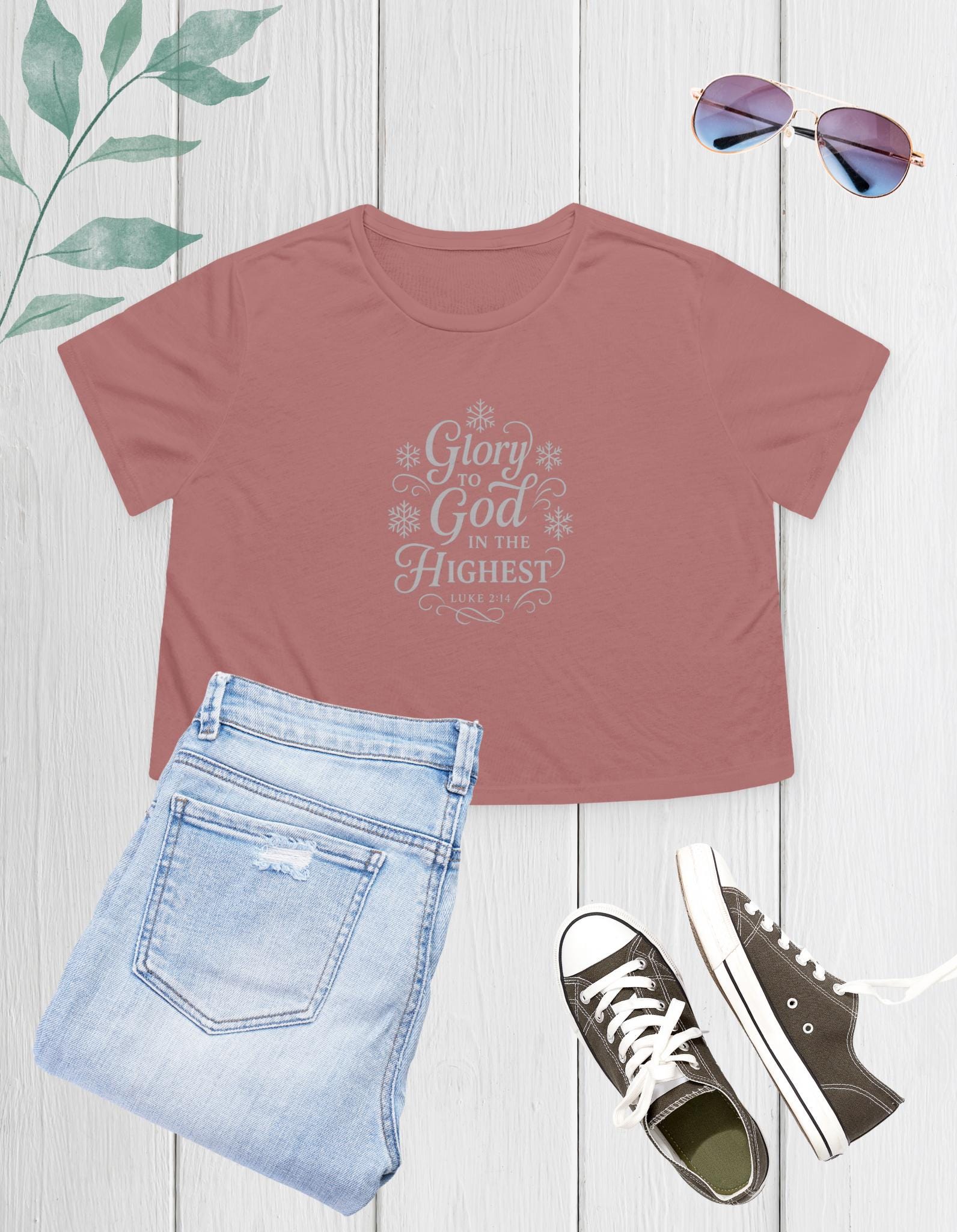 Glory to God in the Highest Luke 2:14 Shirt – Minimal Snowflake Christmas Tee, Bella Canvas Crop, V-Neck, Long Sleeve & Hoodie