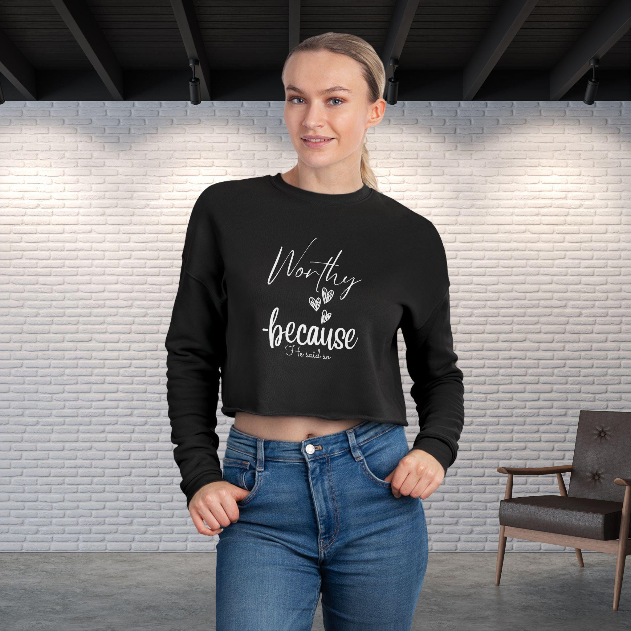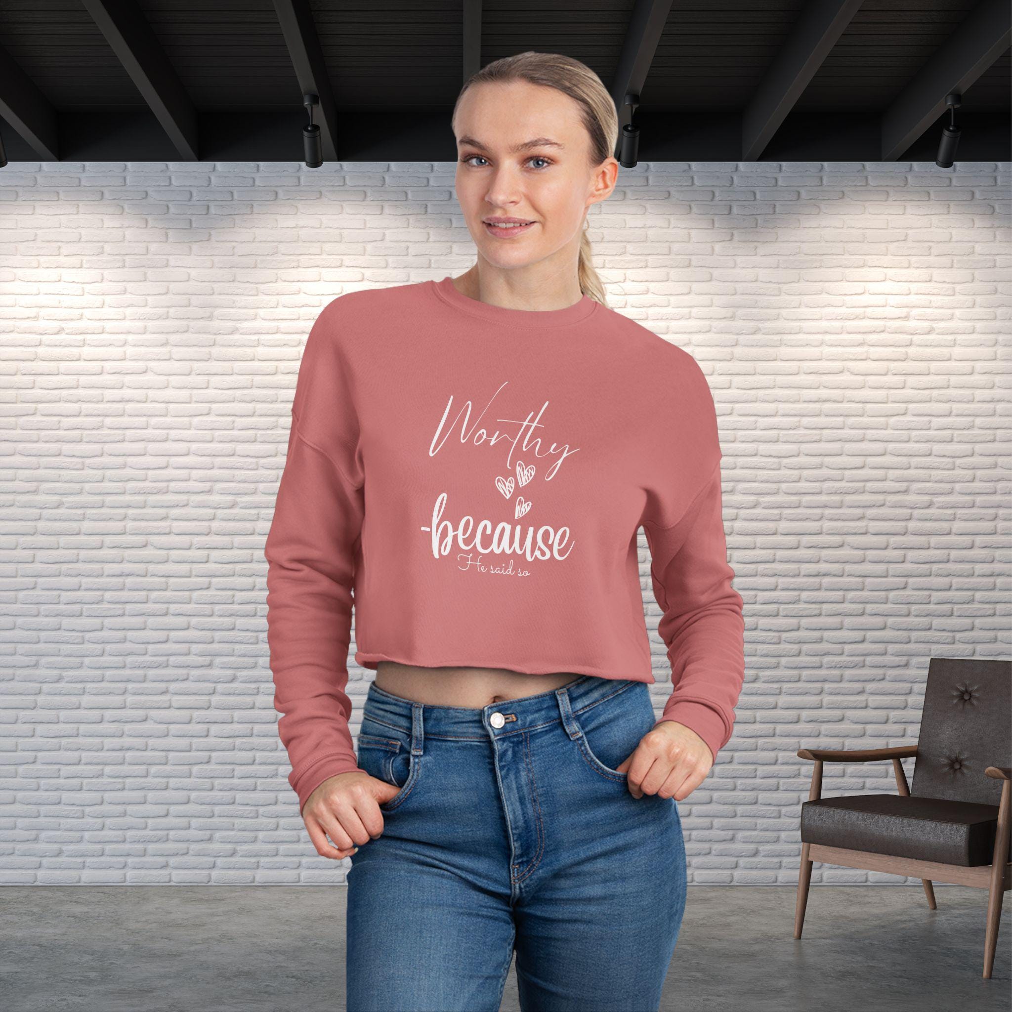 Worthy Because He Said So Shirt, Inspirational Christian Cropped Sweatshirt, Affirmation Gift